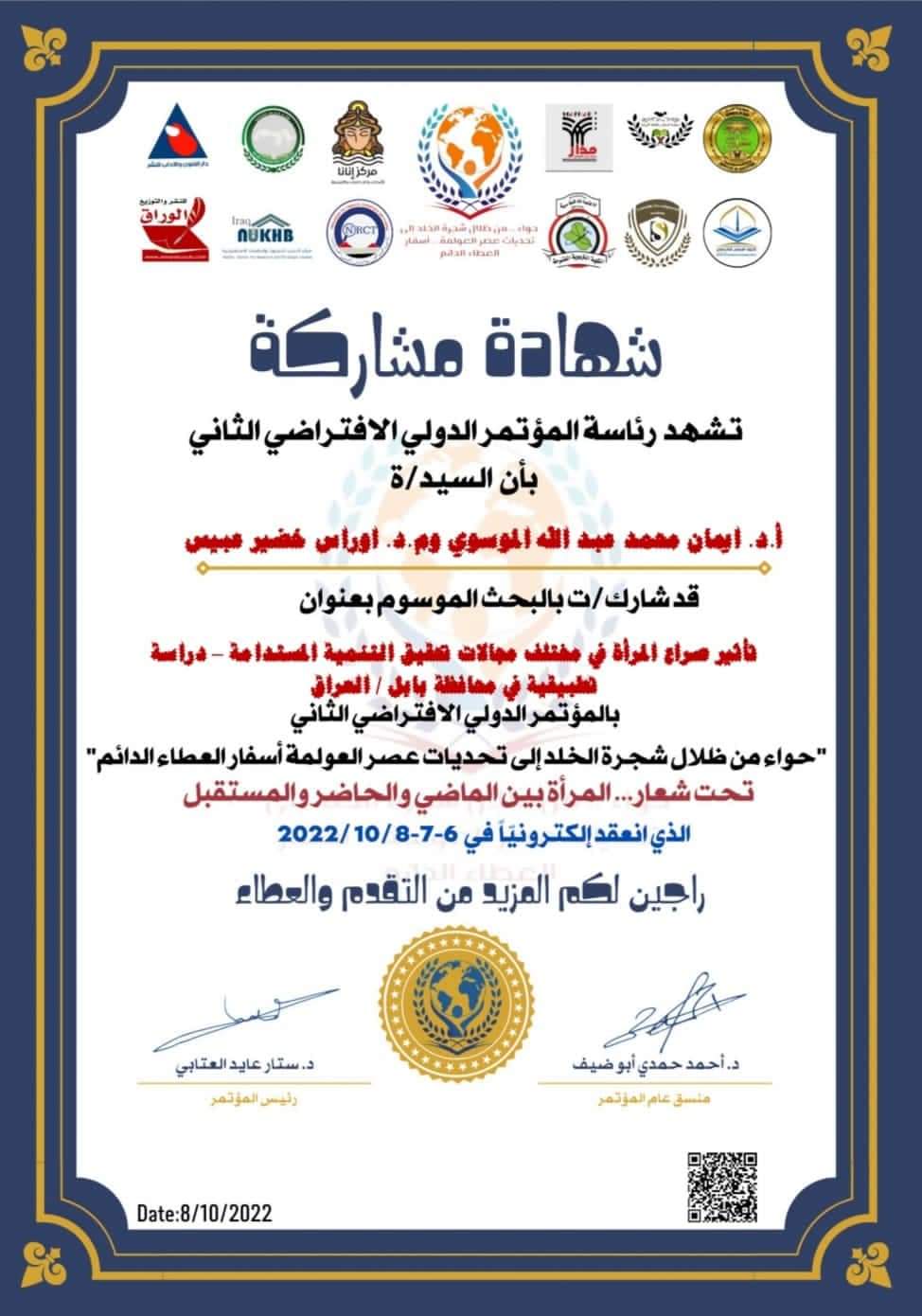 تدريسيه في جامعة الفرات الاوسط التقني / المعهد التقني / بابل تشارك في بالمؤتمر الدولي الثاني للتطور في العلوم الهندسية والتكنلوجيا
